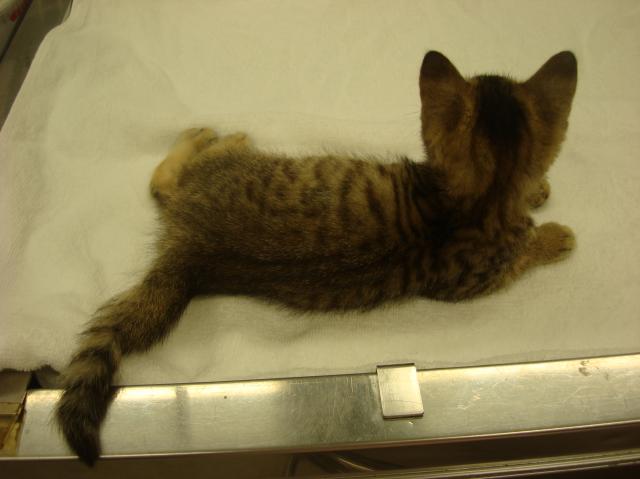 目ヤニが酷く殆ど開いてなく、猫カゼもある。母猫が傍に居なかった為か?ウンチの処理が出来ずオシリと尻尾がタダれていた状態。